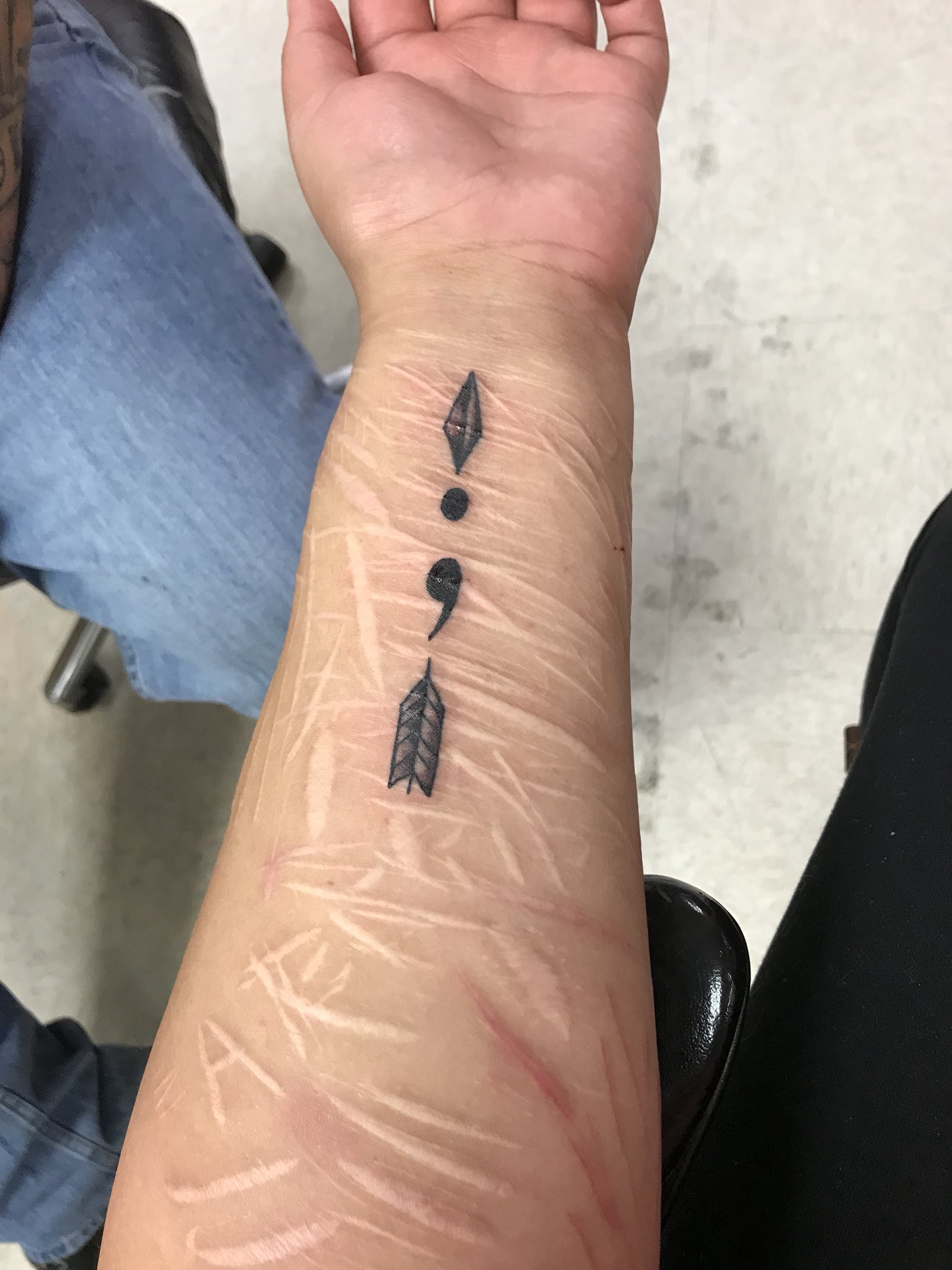 Southern Beaut On X My Tattoo I Just Got Don T Freak Out Because Of The Scars Please I M In Recovery From Self Harm Which Is Why I Have The Semi Colon My